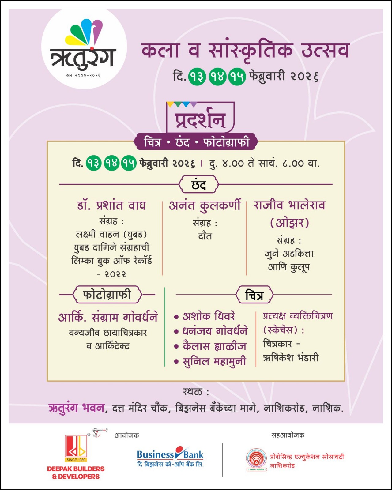 ऋतुरंग भवन, दत्त मंदिर चौक, बिझनेस बँकेच्या मागे, नाशिकरोड, नाशिक.